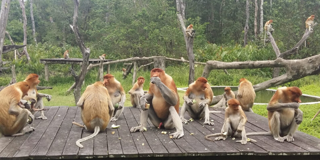 Ma sono tante e diverse le scimmie che ci affascinano in questo viaggio: dai langur, i cui maschi vivono in gruppi di 9-30 esemplari tra le mangrovie e nella foresta fluviale alle nasiche, scimmie grandi dal naso pronunciato e allungato, una sorta di proboscide. Le femmine hanno quest'organo più modesto, ma sempre bizzarro, i maschi molto più imponente.